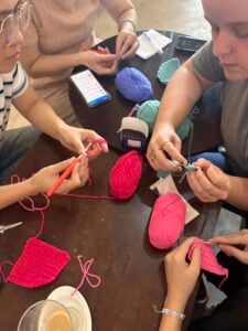 Last week, we were also given the opportunity to teach a 13 year old girl how to crochet! There is a group of 13 year old girls that are very vulnerable to human trafficking because of their age and their situation. Most of them have been abandoned  by their parents and are living on their own with no schooling. These girls have some older women as mentors that are teaching them life skills that would be helpful to them and getting a job. It was a very relaxing morning of crafting with one of the young girls and her menors crocheting and water coloring! She was so happy we were there and picked up crocheting really quickly! We were all very impressed!