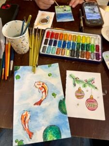 ^teaching crocheting and watercoloring!