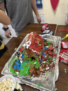 ^amazing team picture for Christmas (w/outAdeline) & the gingerbread house made by 11 year old boys at youth group!